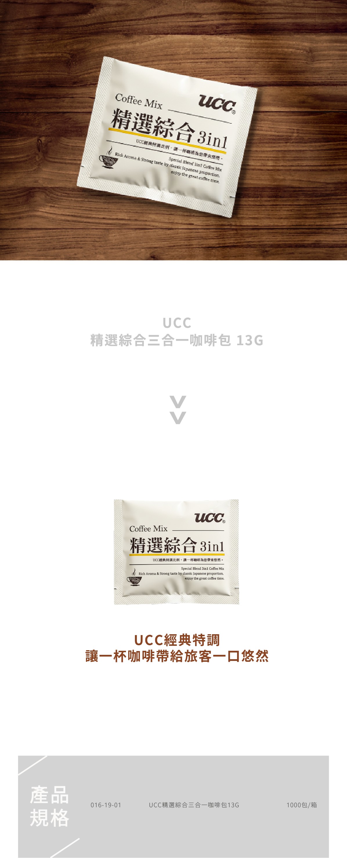 016-19-01 UCC精選綜合三合一咖啡包 13G 1000包/箱