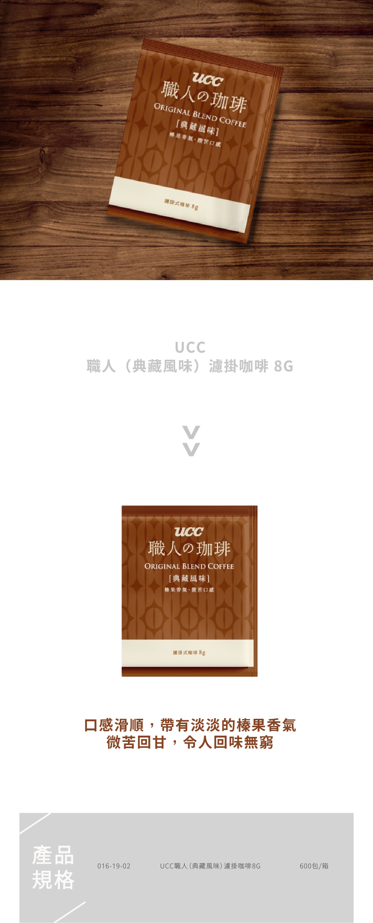 016-19-02 UCC職人(典藏風味)濾掛咖啡8G 600包/箱