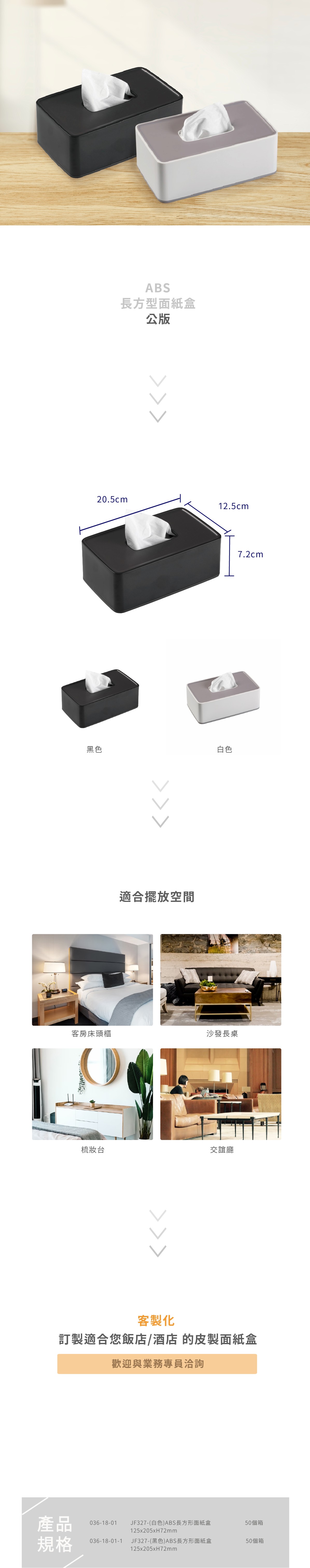 JF327-(白色/黑色)ABS長方形面紙盒 125 X 205 X H72 MM