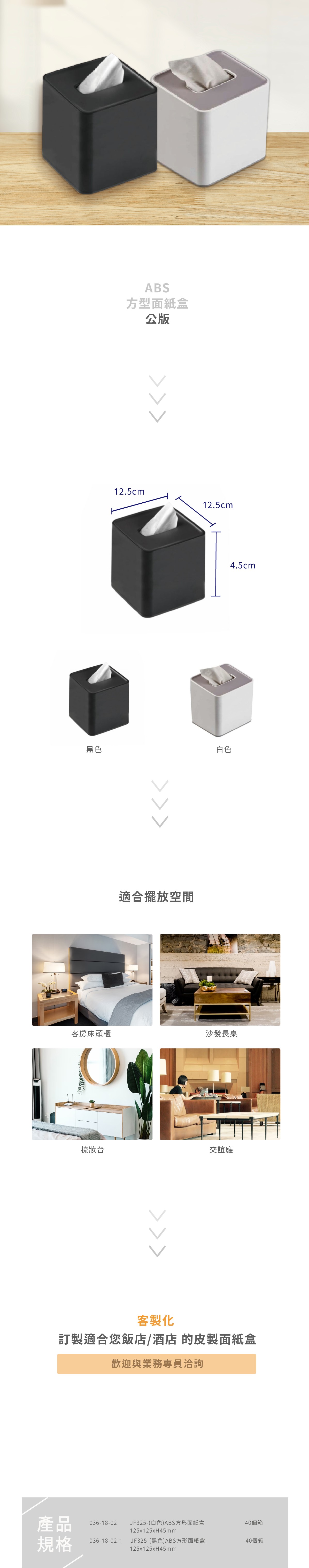 JF325-(白色/黑色)ABS方形面紙盒 125 X 125 X H45 MM