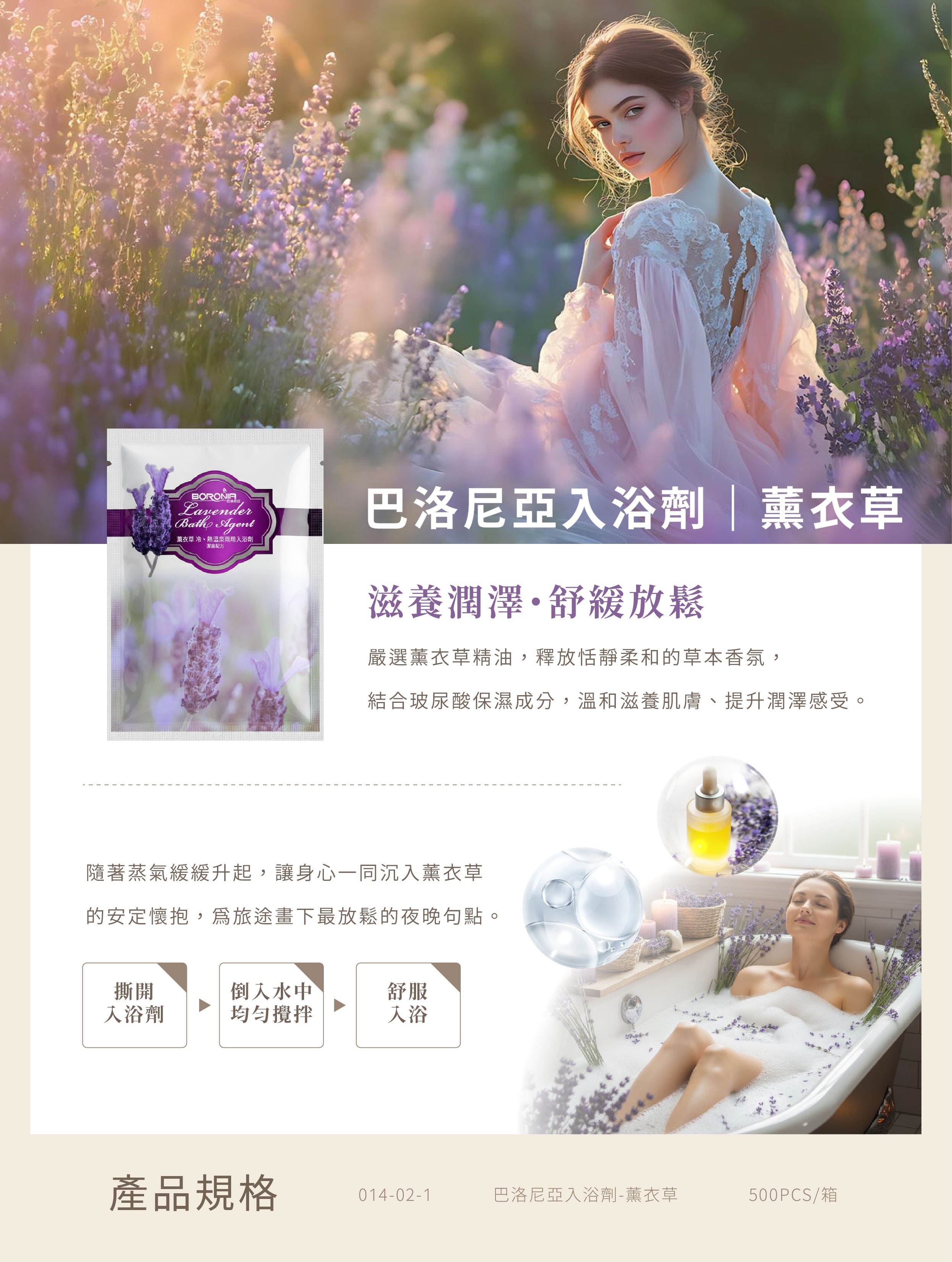 含珍貴的薰衣草精油,散發出浪漫的香氛氣息,添加玻尿酸,使肌膚感受到無比的滋養與潤澤,讓肌膚沉浸在薰衣草香氛擁抱中。<br /> <br /> 500包/箱。中市衛粧廣字第 10407086號